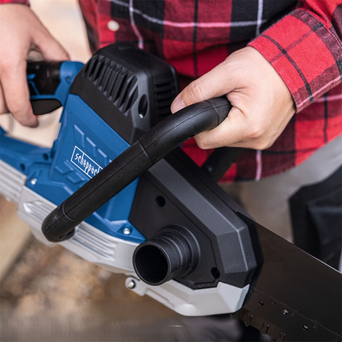 Velkou výhodou je odolný dvojitý pilový systém s protiběžnými listy, který výrazně snižuje vibrace, minimalizuje zpětný ráz a zajišťuje čistou řeznou hranu. Stabilní přenos výkonu umožňuje spolehlivý chod i při delším zatížení, takže pila obstojí i při náročném profesionálním používání.