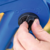 Zařízení je vybaveno 45 litrovým sběrným vakem s praktickým okénkem pro kontrolu naplnění. Přepnutí mezi režimy foukání a vysávání je rychlé a nevyžaduje žádné nástroje. Ergonomický design zahrnuje nastavitelnou rukojeť, měkčenou protiskluzovou úpravu madla a nosný popruh pro pohodlné nošení i při delší práci. Velká vodicí kola umožňují snadné ovládání a lehký pohyb po zahradě.