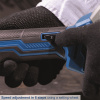 Bruska umožňuje nastavení otáček v šesti stupních v rozsahu 2 500 až 10 000 ot/min, což zaručuje přesné přizpůsobení danému materiálu a aplikaci. Přední rukojeť lze nastavit do tří poloh a je vybavena integrovaným držákem na montážní klíč, což zvyšuje komfort a rychlost při výměně kotouče. Snadnou výměnu nástroje zajišťuje praktická aretace vřetene. Model disponuje standardním upínáním M14 a je určen pro kotouče s průměrem 125 mm.