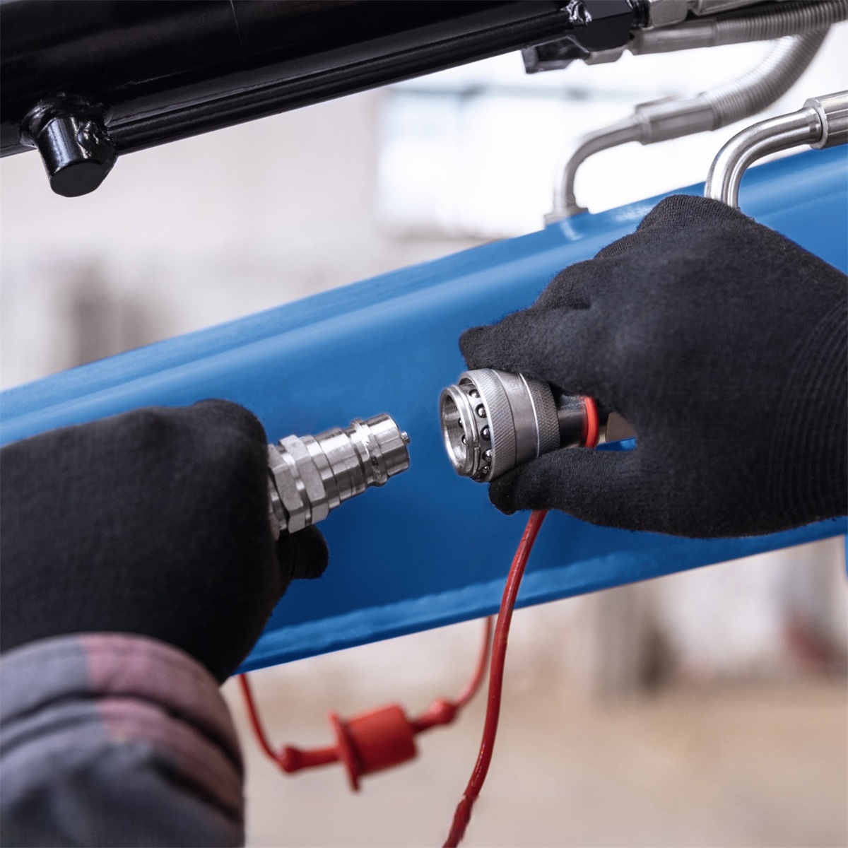 Komfort a bezpečnost zvyšuje elektrický startér, parkovací brzda s hydraulickým zámkem a výkonné LED osvětlení integrované do ramene pro práci za zhoršených světelných podmínek.