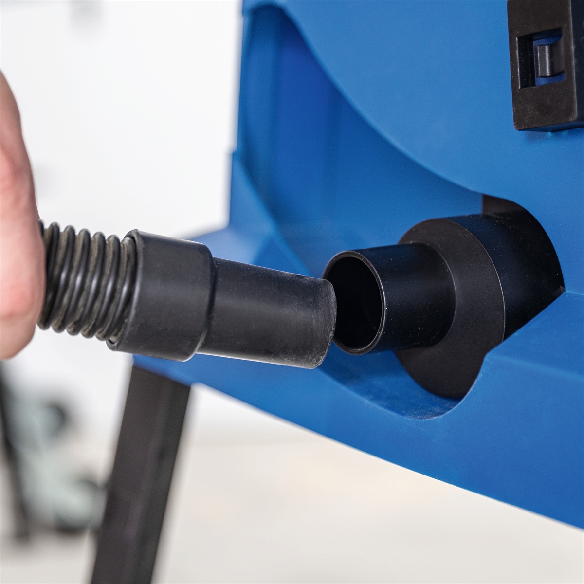 Základem pohodlné práce je stabilní a dostatečně vysoký podstavec, který umožňuje ergonomickou, vzpřímenou pracovní pozici. Ovládání je jednoduché a intuitivní – velké otočné kolo slouží k přesnému nastavení výšky kotouče a nechybí ani nezávislé nastavení jeho sklonu až do
