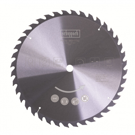 Pílový kotúč TCT (500 x 30 x 3,6 mm, 40 Z) Kvalitní pilový kotouč z tvrdokovu o průměru 500 mm, speciálně určený pro kolébkové pily Scheppach HS 510 a HS 550.