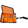 Univerzální sada pro broušení pilových řetězů a srážení omezovacích zubů Arnold v praktické rolovací brašně.