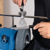 Základem kvalitního ostří je široký brusný kámen o průměru 200 mm s mikročásticemi oxidu hlinitého, díky kterým lze brousit i nástroje z tvrdokovu. Pro finální úpravu a zahlazení mikrootřepů slouží vyměnitelný honovací kožený kotouč.