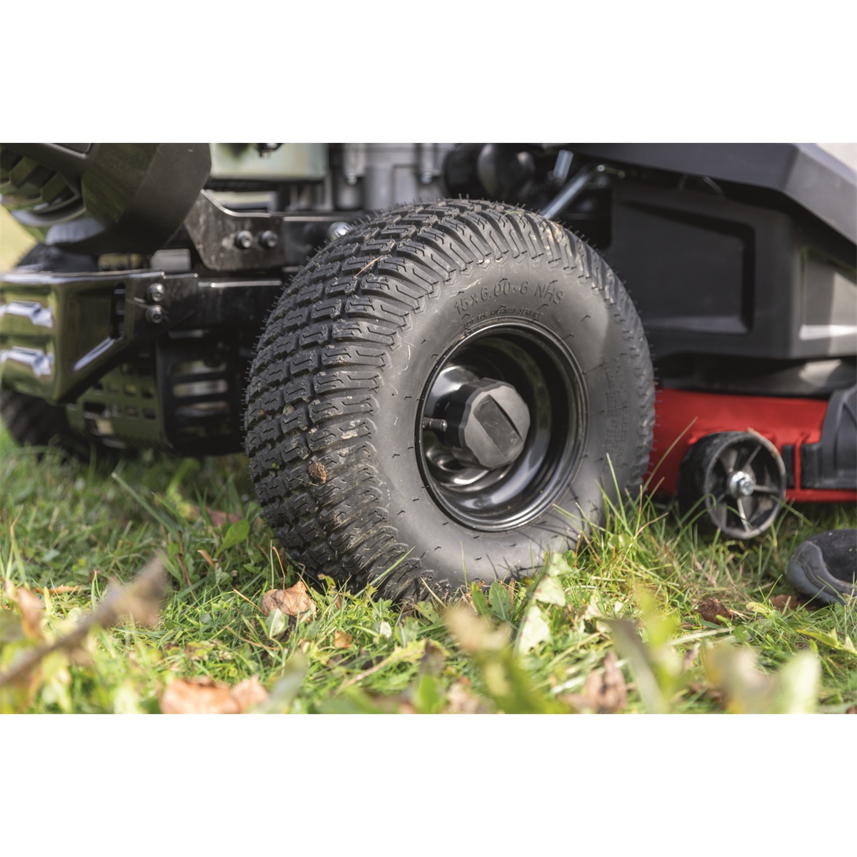 Traktor je vybaven odolnou hydrostatickou převodovkou, která zajišťuje maximálně komfortní ovládání. Rychlost i směr jízdy nastavujete plynule bez nutnosti řazení, takže práce je příjemná i na členitějším pozemku nebo při objíždění stromů a záhonů. Plynulá regulace rychlosti umožňuje perfektní přizpůsobení tempa sečení – vpřed až 10 km/h a vzad až 6 km/h. Výsledkem je hladká jízda, snadné manévrování a dlouhá životnost převodového systému.