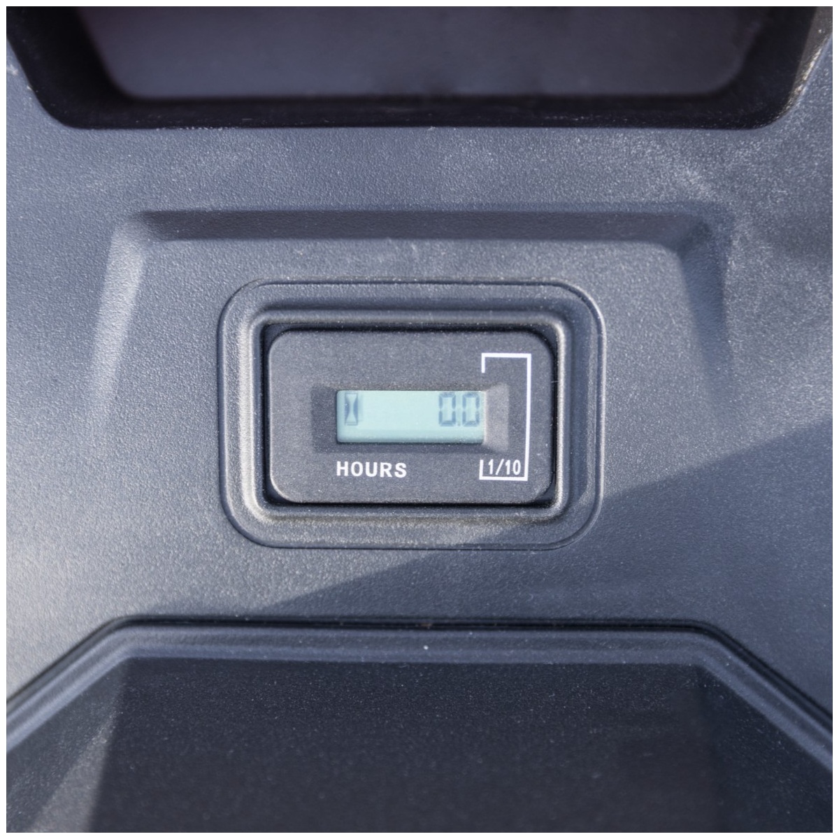 Údržbu stroje výrazně usnadňuje počítadlo motohodin, díky kterému máte přehled o servisních intervalech. Velkým plusem je také integrovaná přípojka na vodu, která umožňuje rychlé a jednoduché vyčištění žacího ústrojí po práci – jednoduše připojíte hadici a vypláchnete prostor pod sekačkou. O bezpečnost se starají dva bezpečnostní spínače – pod sedadlem a na sběrném koši, které zvyšují jistotu při každém použití a pomáhají předcházet nechtěnému spuštění. Traktor má palivovou nádrž o objemu 7,5 l a díky své konstrukci nabízí stabilní a spolehlivý provoz i při pravidelném používání.