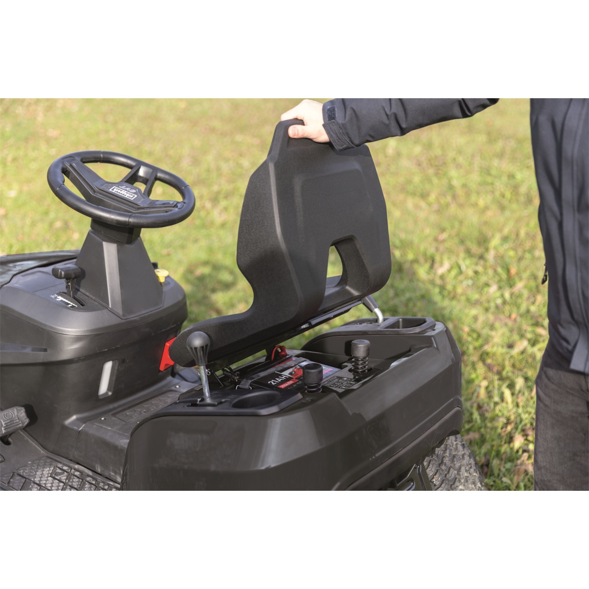 Traktor je vybaven odolnou hydrostatickou převodovkou, která zajišťuje maximálně komfortní ovládání. Rychlost i směr jízdy nastavujete plynule bez nutnosti řazení, takže práce je příjemná i na členitějším pozemku nebo při objíždění stromů a záhonů. Plynulá regulace rychlosti umožňuje perfektní přizpůsobení tempa sečení – vpřed až 10 km/h a vzad až 6 km/h. Výsledkem je hladká jízda, snadné manévrování a dlouhá životnost převodového systému.