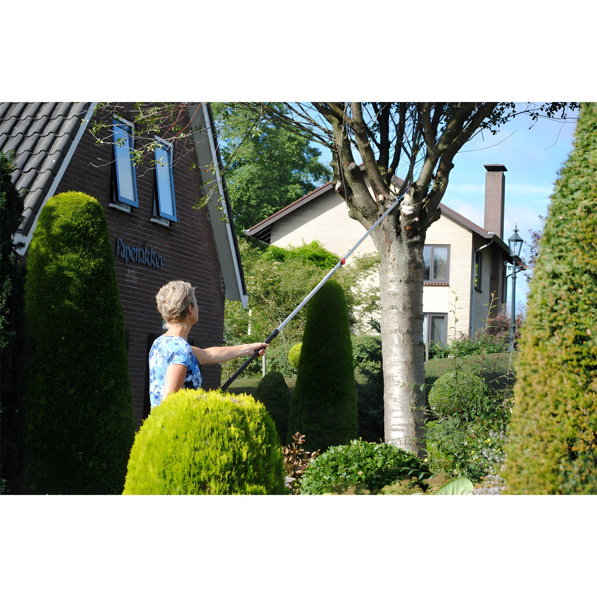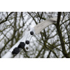 Hliníková násada má oválný tvar, díky které máte velmi přesnou kontrolu nad směrem řezu, což budete potřebovat při prořezávání ve velké výšce. Navíc tento tvar poskytuje větší pevnost a tuhost po celé délce tyčové pily a minimalizuje ohýbání. Při plném rozložení násady pak pila dosahuje maximální délky 2,7 metru. V kompletně složeném stavu má pila naopak pouhých 1,75 m, což oceníte při jejím transportu. Dva zajišťovací mechanismy (tlačítka a páky) společně vytvářejí nejbezpečnější a nejstabilnější zajištění preferované délky násady, přičemž nejnižší část je opatřena gumou rukojetí pro pohodlné a bezpečné uchopení i za mokra.