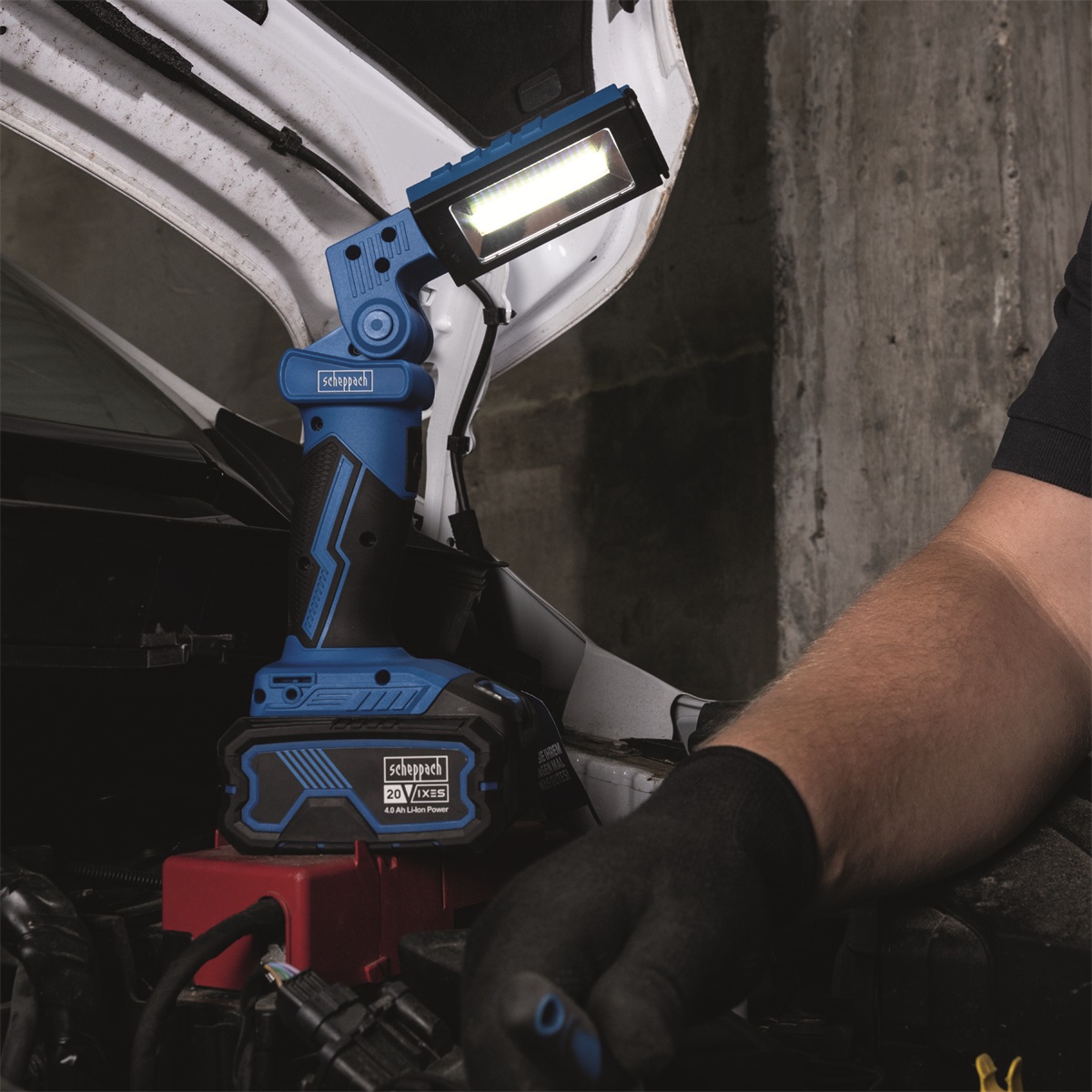 C-WL20-X Dopřejte si dokonalé osvětlení při práci nebo na cestách s výkonnou akumulátorovou svítilnou Scheppach C-WL20-X. Díky provozu bez kabelu a kompaktnímu designu je tato svítilna ideální pro použití v dílně, při opravách automobilů, kempování či jiných aktivitách.