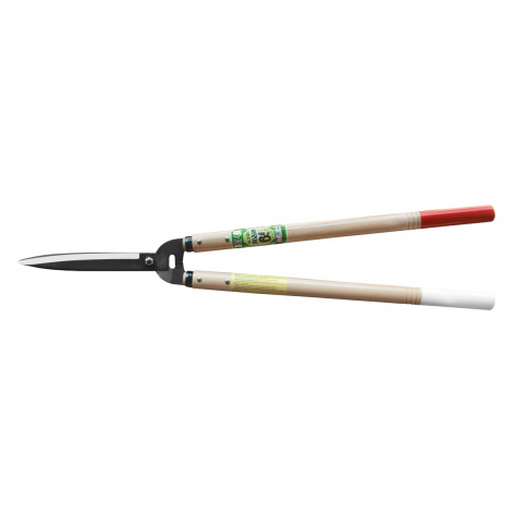 Nůžky jsou vybaveny 50 cm dlouhými dřevěnými rukojeťmi, které poskytují výborný pákový efekt při střihu. Čepele o délce 200 mm jsou naostřeny ve dvou úhlech, což zajišťuje hladký, čistý a tichý střih s minimální námahou. S hmotností 1050 g jsou navíc nůžky poměrně lehké a dobře vyvážené, což oceníte zejména při delším používání.
