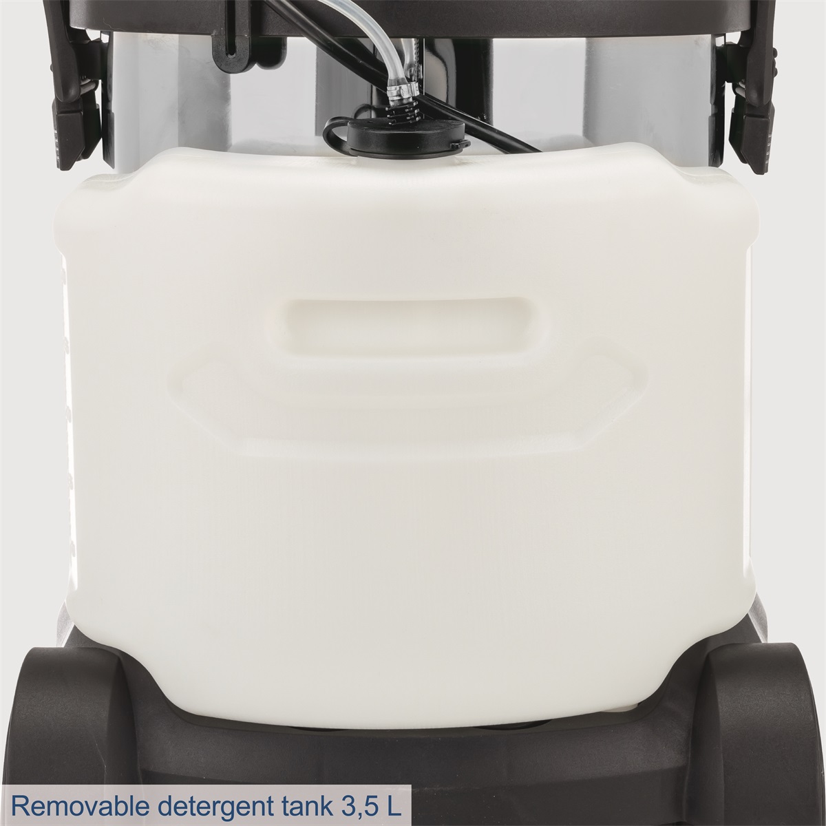 Zařízení je vybaveno praktickou hadicí, která umožňuje snadné stříkání i odsávání a odnímatelnou nádržkou na vodu a čisticí prostředek s kapacitou 3,5 litru. Odpadní voda je shromažďována v odolné nerezové nádrži o objemu 20 litrů. Ta má boční uzávěry a praktickou výpusť na špinavou vodu. Výkonný motor o síle 1600 W poskytuje dostatek energie i pro náročné úkoly. Pro pohodlnou práci má stroj pracovní dosah až 9,5 m, a to díky 2 m sací hadici s otočným adaptérem a 7,5 m přívodnímu kabelu. Integrovaný držák na kabel a příslušenství zajišťuje pořádek během práce i skladování. Sklopná rukojeť a čtyři hladce se pohybující kolečka umožňují snadný pohyb po jakémkoliv povrchu.