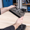 Masivní litinová konstrukce se sloupem o průměru 59,5 mm zajišťuje maximální stabilitu při práci. Pracovní stůl o rozměrech 198 × 194 mm je otočný o 360°, výškově nastavitelný a lze jej naklopit až o ±45°, což umožňuje pohodlné vrtání i složitějších obrobků. Digitální displej navíc zobrazuje aktuální otáčky v reálném čase.